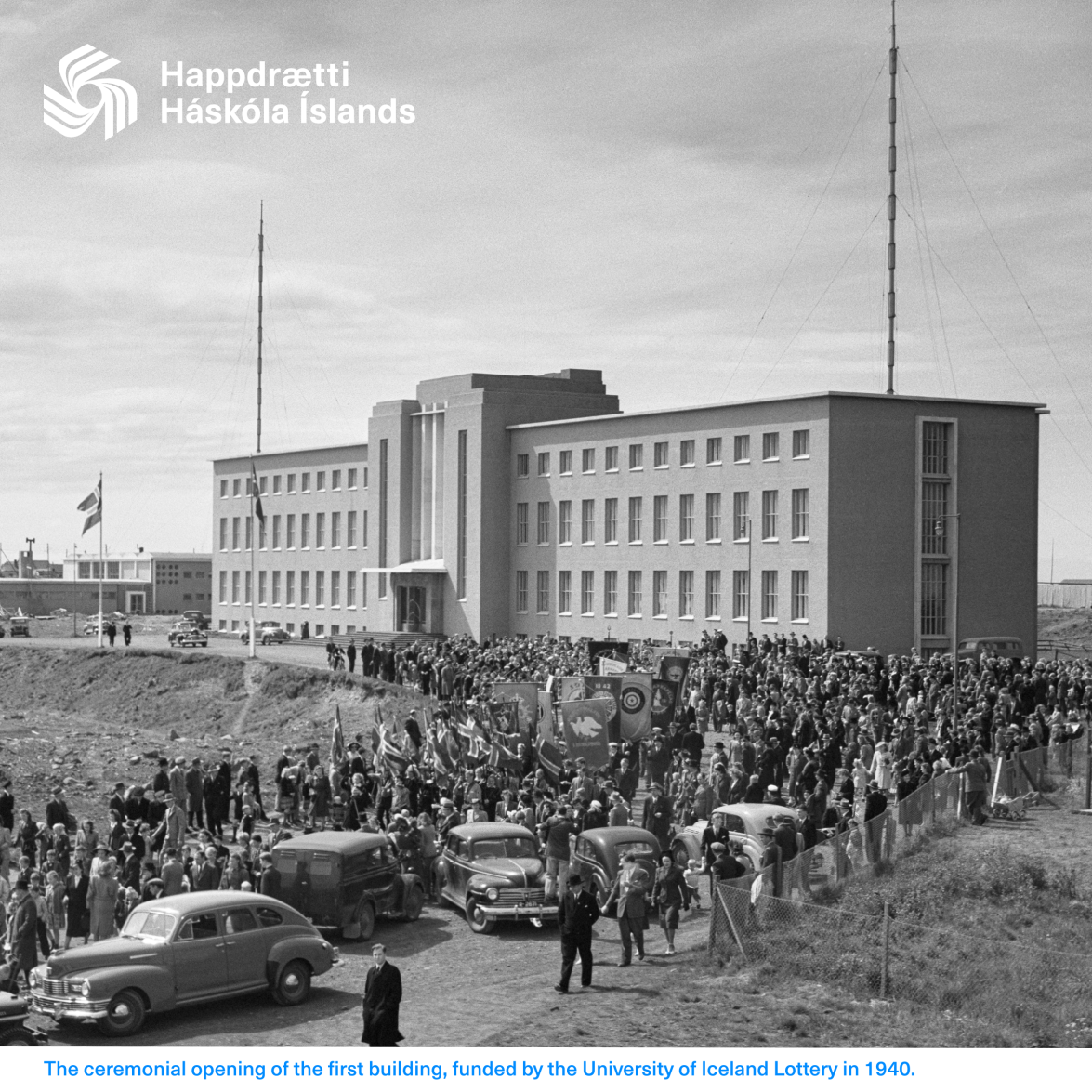 Historic image: The ceremonial opening of the first edifice, funded by the University of Iceland Lottery in 1940. (©UIL)